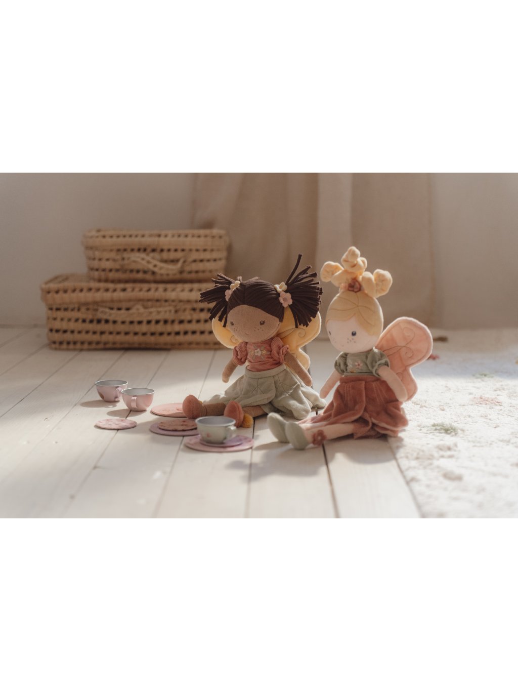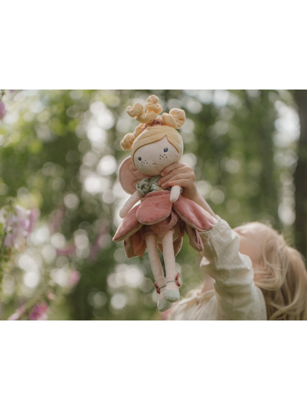 Z kúzelnej kvetinovej záhrady k vám domov prichádza neodolateľná víla Mila! Bábika z jemného mäkkého materiálu s krídlami a krásnymi šatami je vhodná na hranie aj maznanie a bude sa s ňou aj krásne zaspávať! Bábika dodávaná v krásnom darčekovom boxe je súčasťou dizajnovej kolekcie hračiek a doplnkov Little Dutch Fairy Garden inšpirovanej životom na záhrade. Zloženie: 100% polyester Výška: 35 cm Možno prať v práčke. Vhodné pre deti od 12 mesiacov.
