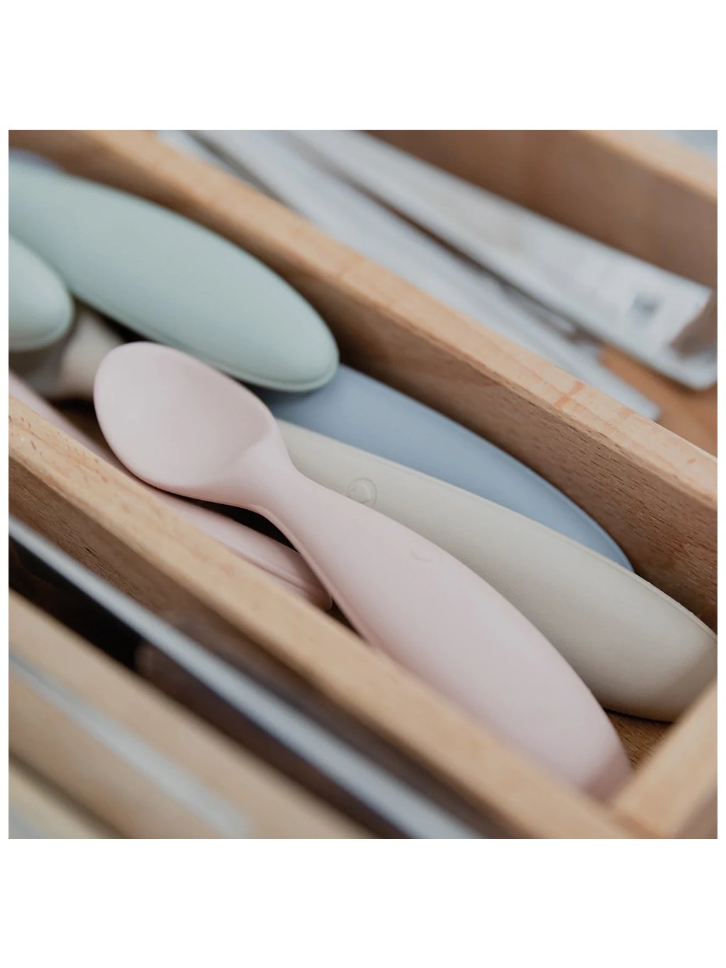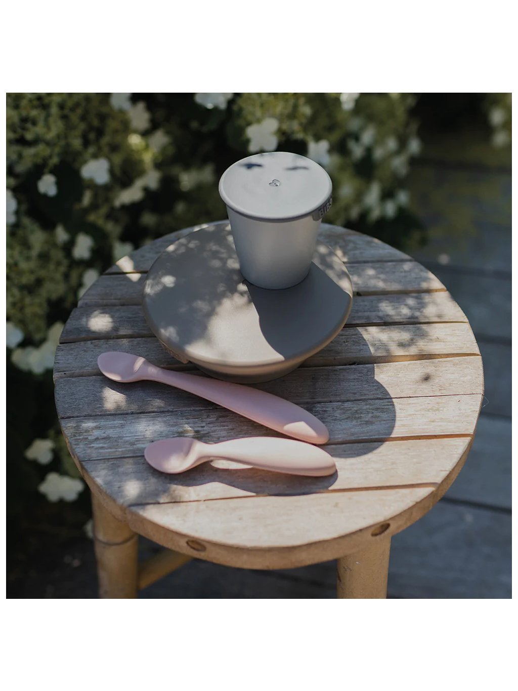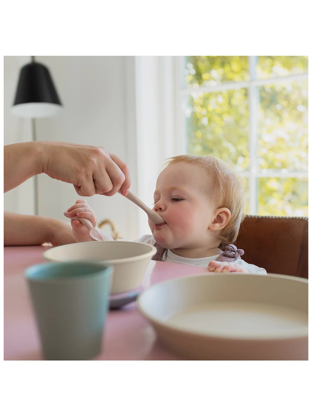 BIBS je obľúbená dánska značka s tradíciou výroby ikonických cumlíkov od roku 1978. Okrem cumlíkov BIBS ponúka aj pestrý prémiový sortiment pre najmenšie deti v minimalistickom škandinávskom dizajne a širokej farebnej palete. Všetky BIBS produkty sú garanciou najvyššej kvality detského sortimentu. Súprava lyžičiek BIBS, s ktorými si užijete spoločné chvíľky pri kŕmení. Kým väčšou lyžičkou rodič kŕmi dieťa, menšia lyžička, ideálna pre maličké detské rúčky, slúži na samokŕmenie a rozvoj motoriky. Spoločné stolovanie je dôležité a môže naučiť deti nie len zdravému stravovaniu, ale pomáha rozvíjať aj ich sociálne zručnosti. Vyrobené zo 100% bezpečného potravinárskeho materiálu, bez BPA, PVC či ftalátov. Mäkká a úzka špička lyžičky na ochranu vyvíjajúcich sa zúbkov a boľavých ďasien dieťaťa. Ideálna veľkosť a tvar na prvé príkrmy. Podporuje samokŕmenie a rozvíja jemné motorické zručnosti. Protišmyková a ergonomická rukoväť pre čo najlepší úchop. Navrhnuté a vyrobené v Dánsku. Údržba: Umyte teplou vodou, prípadne saponátom a dôkladne opláchnite. Vhodné aj do umývačky riadu. Pozor, nie je vhodné do mikrovlnnej rúry! Certifikáty : V súlade s európskymi normami EN 14372. Dĺžka: Väčšia lyžička cca 17,5 cm. Menšia lyžička cca 12,5 cm.