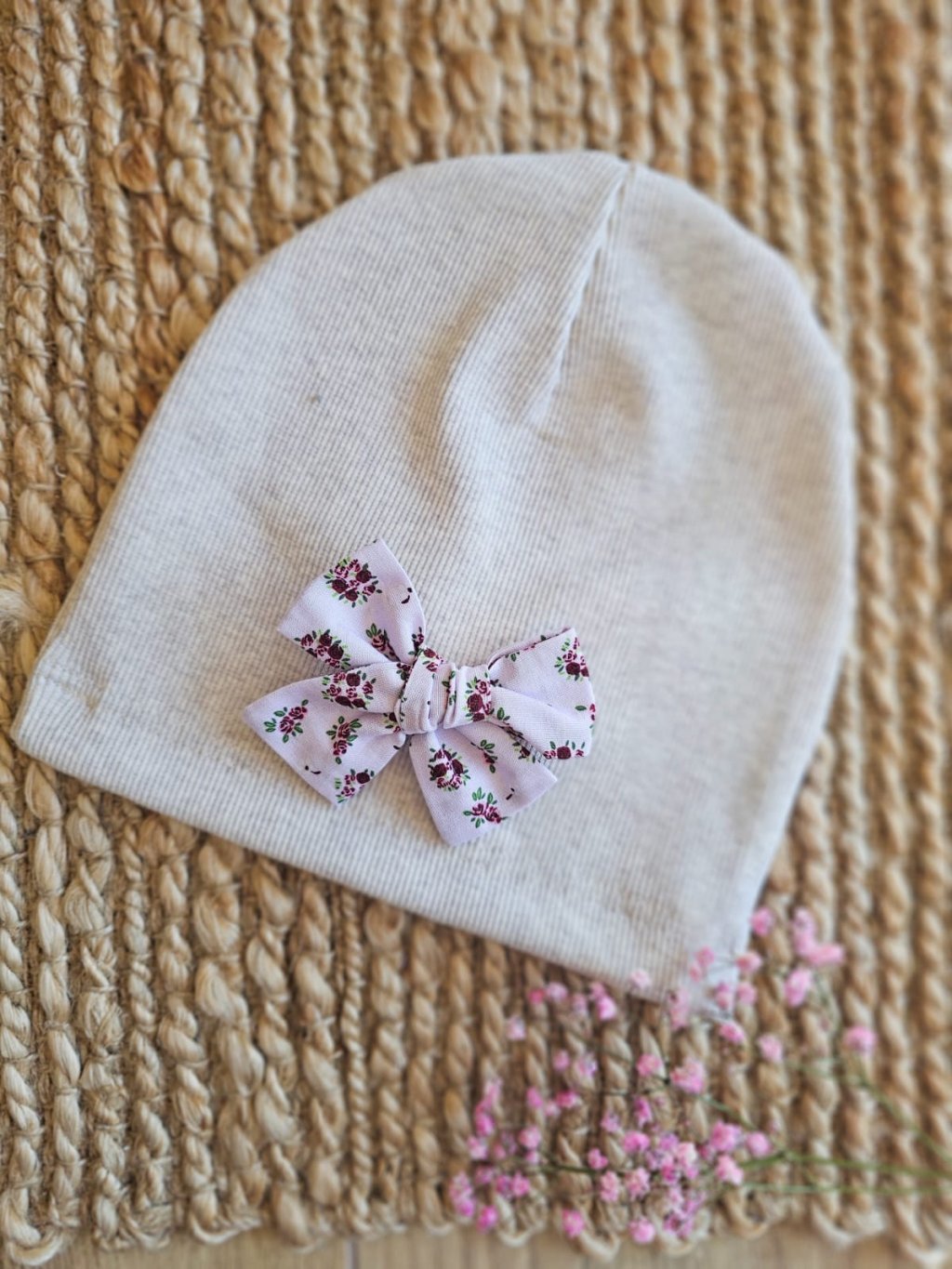 ČIAPKA jednovrstvová Melange spa s ružovou mašličkou