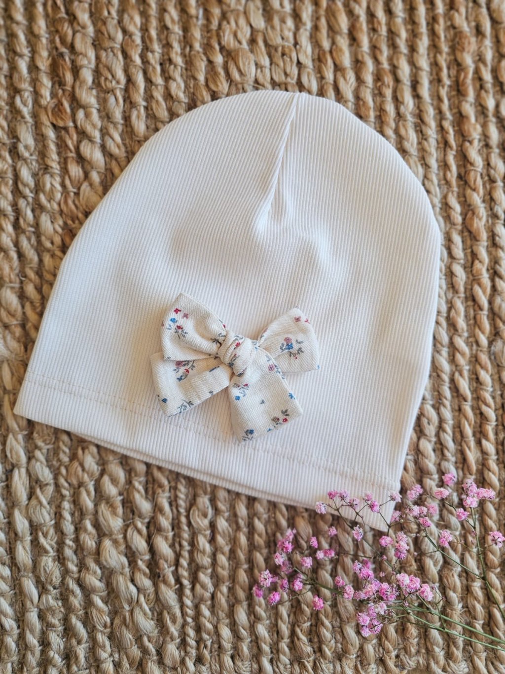 ČIAPKA jednovrstvová Smotanová s bielou mašličkou kvetch