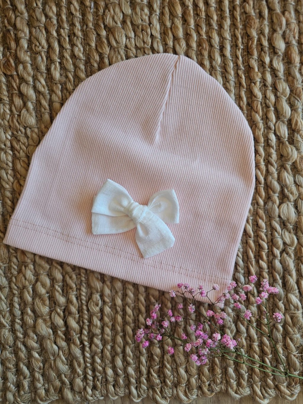 ČIAPKA jednovrstvová svetlo ružová s bielou mašličkou