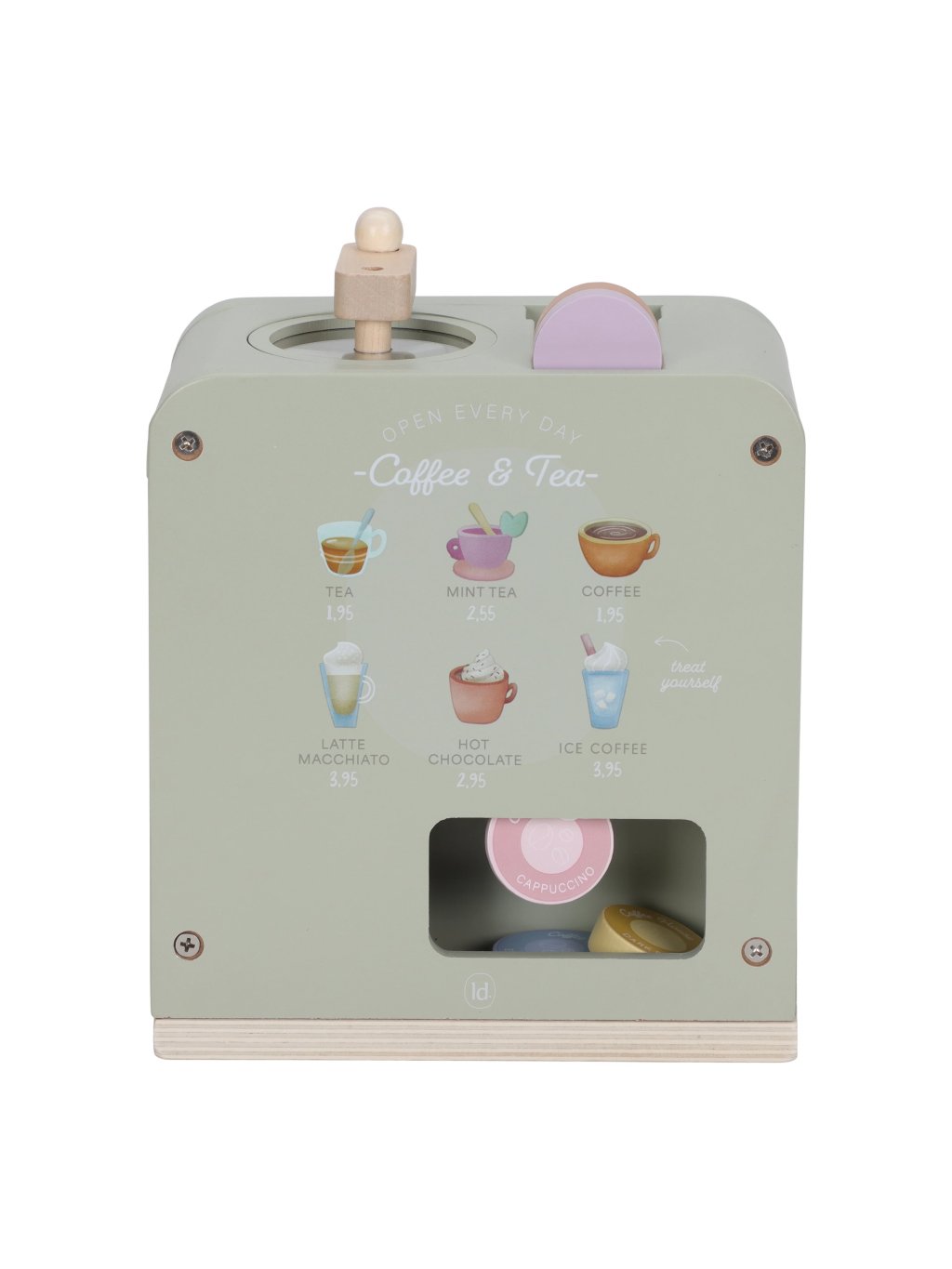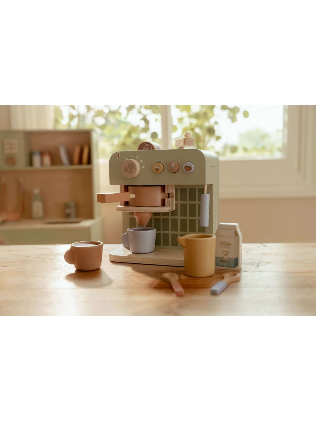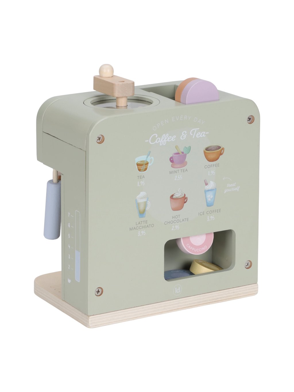 Na akú kávu máte dnes chuť? S týmto krásnym dreveným kávovarom sa z každého dieťaťa stane malý barista. Pre svojich hostí si môže namlieť kávu, vybrať kapsulu, naliať mlieko a ozdobiť nápoj podľa vlastnej fantázie.