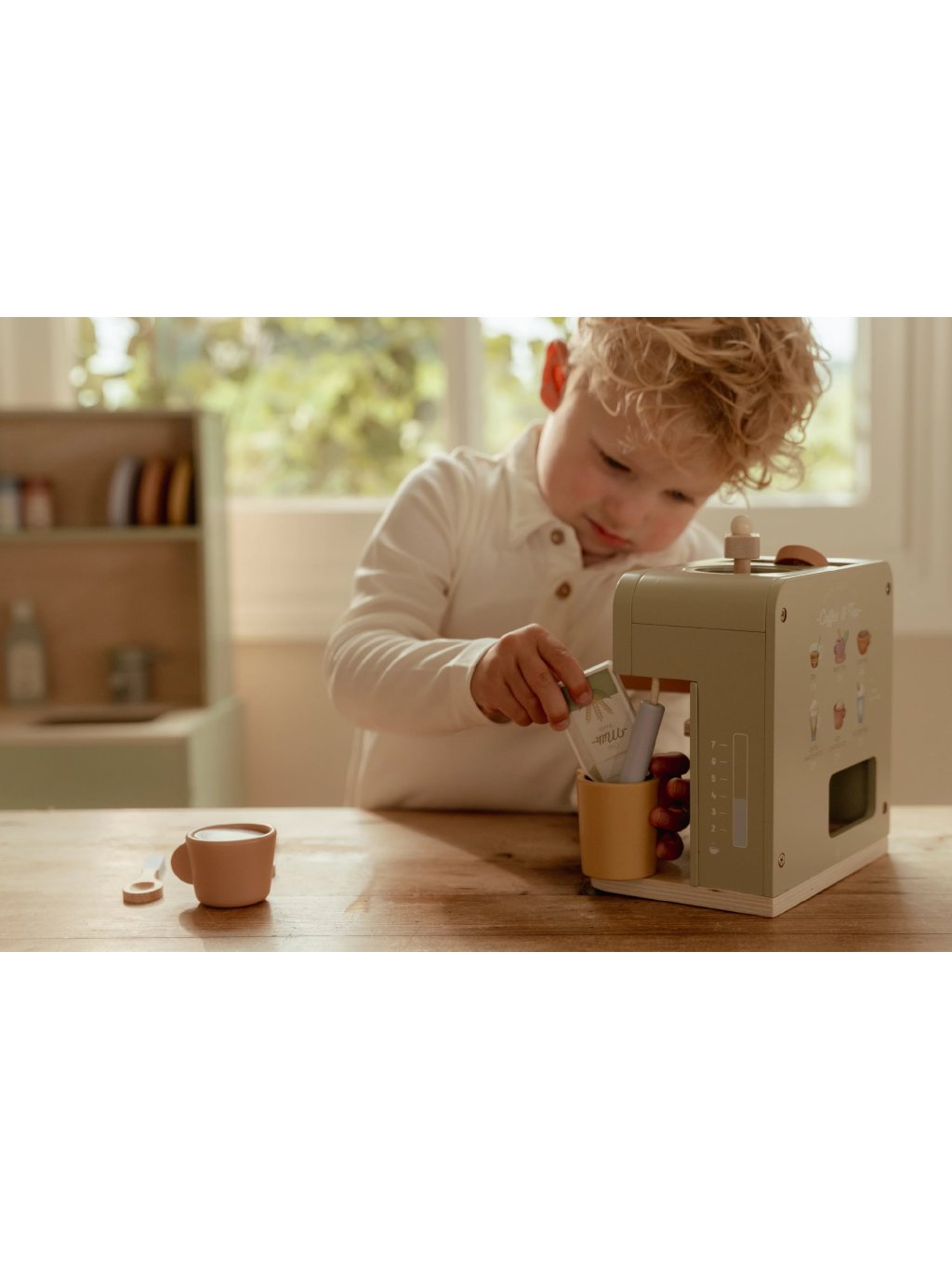 Kávovar je skvelý doplnok k samostatne predávanej detskej kuchynke alebo predajnému stánku Little Dutch. Je ideálny pre hru na kaviareň, rodinné raňajky alebo prípravu kávy na návštevu. Podporuje predstavivosť, kreativitu a jemnú motoriku dieťaťa a pomáha rozvíjať jeho sociálne zručnosti.