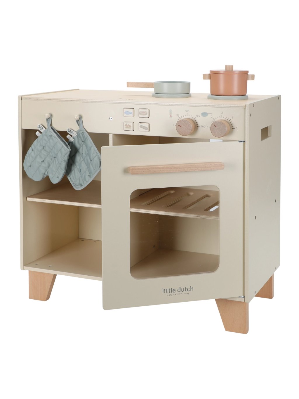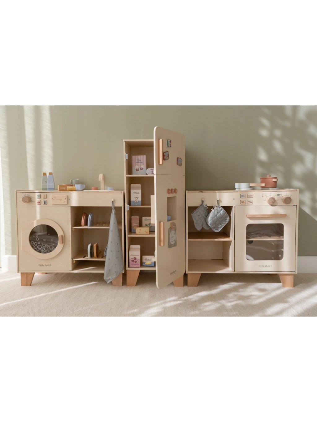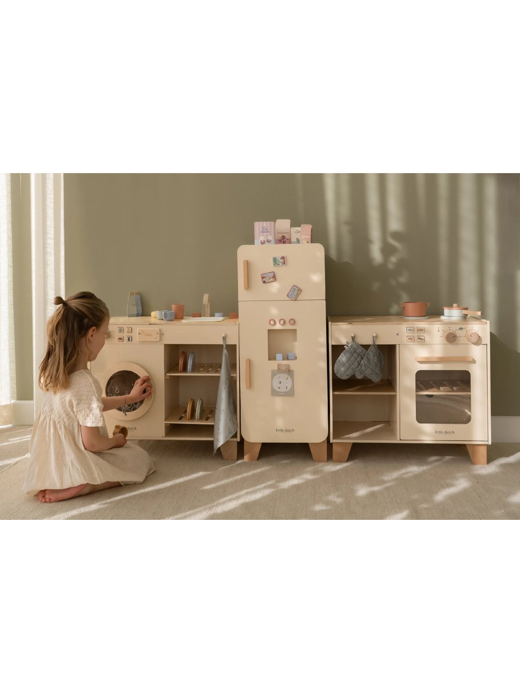 Vďaka možnosti kombinácie s chladničkou alebo práčkou z kolekcie drevených hračiek Little Dutch je možné vytvoriť plne vybavenú hernú kuchyňu. Tú potom môžete doplniť ďalšími drevenými hračkami Little Dutch, napr. kávovarom, sendvičovačom, kuchynskou váhou, krájacím ovocím, krájacou zeleninou, čajovým servisom a pod.