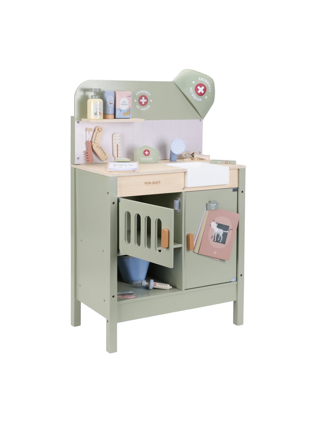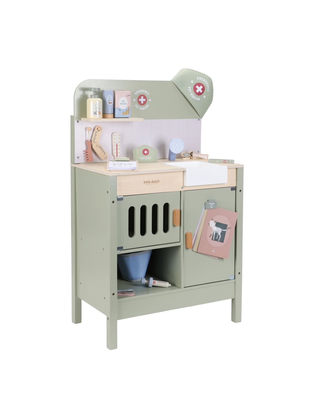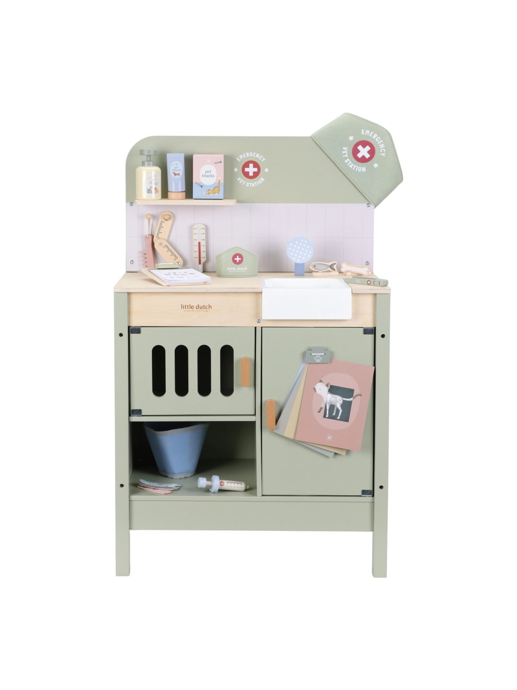 Drevená veterinárna ordinácia Little Dutch je skvelým darčekom pre deti, ktoré milujú zvieratká a starostlivosť o ne. Vďaka realistickým doplnkom sa malí ošetrovatelia ľahko ponoria do sveta starostlivosti o chorých miláčikov. Pripravte sa na množstvo príbehov zo života plyšových zvieratiek a nekonečné hodiny zábavného hrania!
