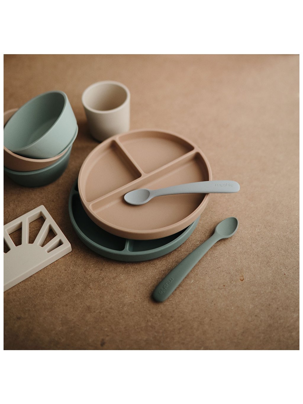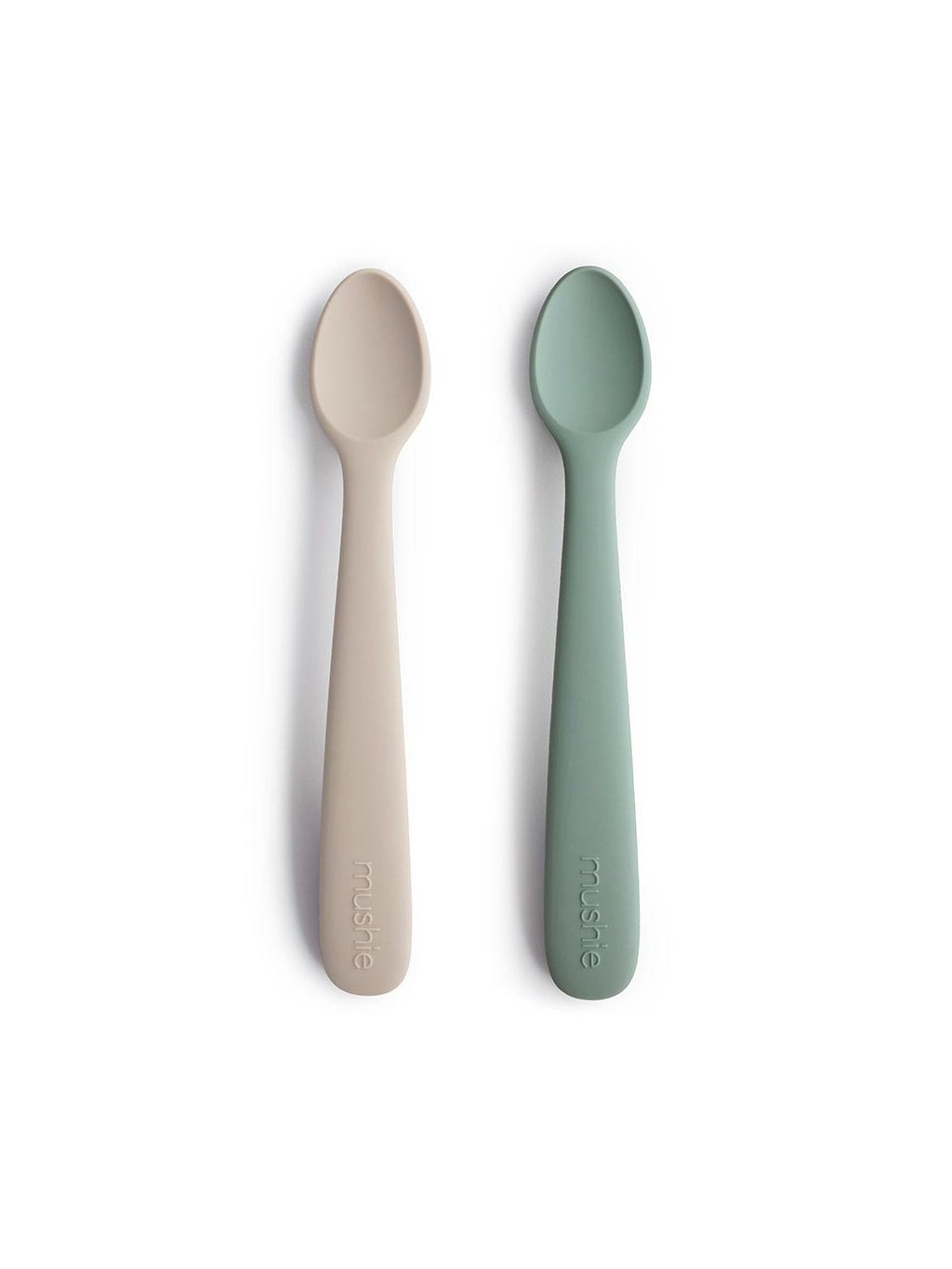 MUSHIE Silikonová lyžička 2ks Cambridge Blue + Shifting Sand