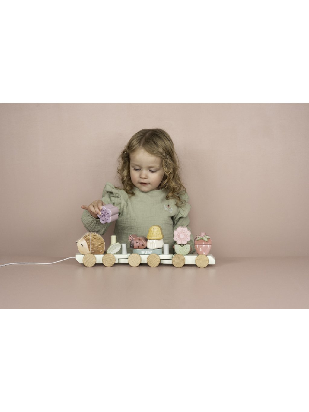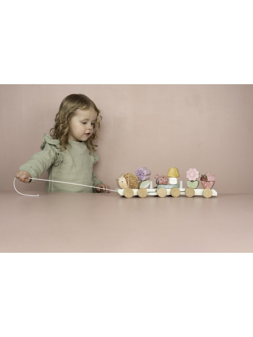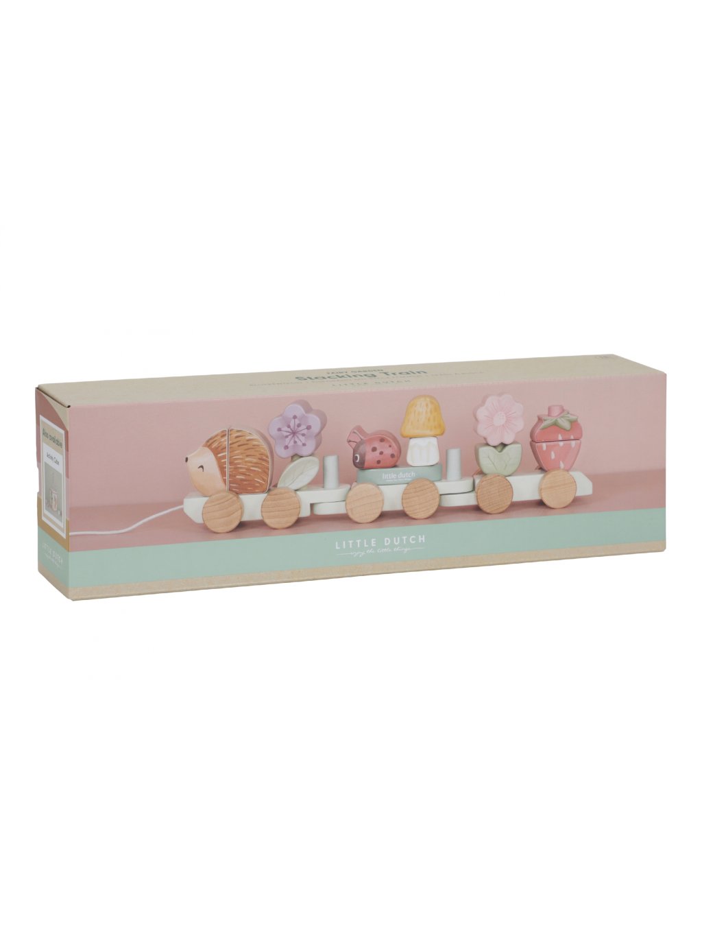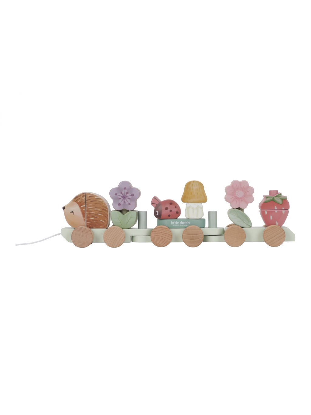 Originálny drevený vláčik z dielne Little Dutch je tvorený kockami rôznych farieb v tvare ježka, lienky, huby, kvetov a jahody. Kombinovaním kociek si vaše dieťa môže zostavovať rôzne varianty vagónov podľa svojej fantázie. Vláčik zaistí vášmu dieťaťu veľa zábavy a môže slúžiť aj ako krásna dekorácia v detskej izbe. Hračka je súčasťou dizajnovej kolekcie hračiek a doplnkov Little Dutch Fairy Garden inšpirovanej životom na záhrade. Vyrobené z dreva certifikovaného FSC. Rozmery: 38,2 x 7 x 10,6 cm Vhodné pre deti od 18 mesiacov.