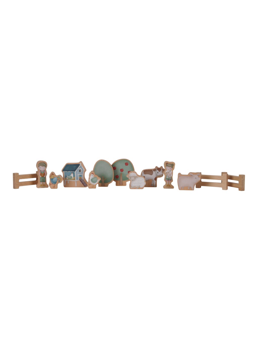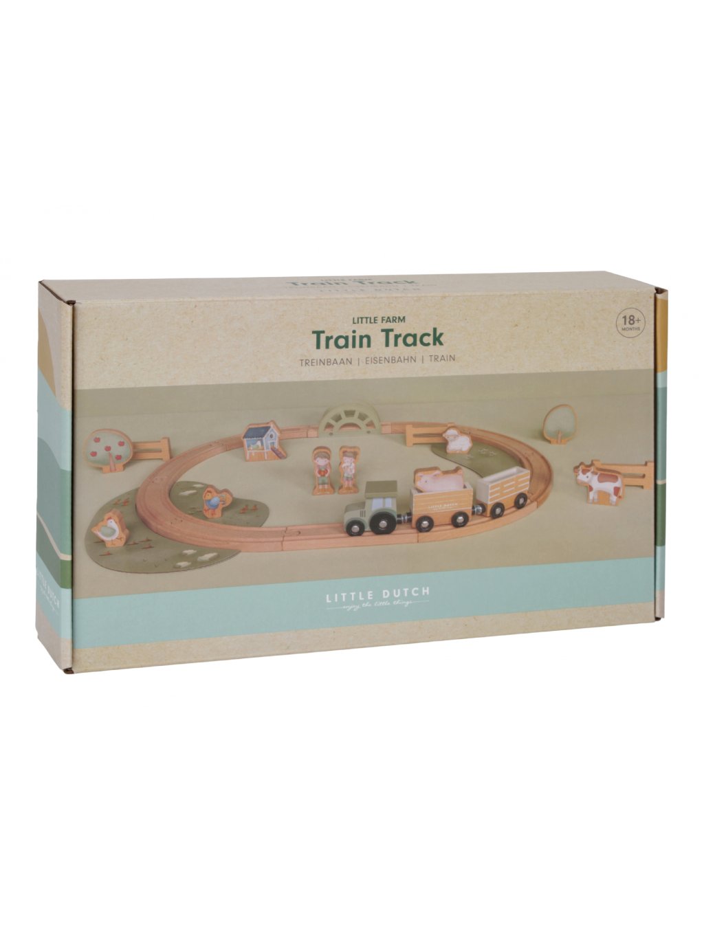 Obľúbená vláčikodráha v krásnom drevenom prevedení ponúka vášmu dieťaťu nekonečné hodiny zábavy a pomáha rozvíjať jeho kreativitu aj jemnú motoriku. Sada obsahuje 10 dielov koľají, mašinku s dvoma vagónmi a 13 ďalších doplnkov zo života na farme. Farma, postavičky, zvieratká aj stromy sú obojstranne potlačené. Zvieratká majú veľkosť vhodnú na naloženie do vagónov, aby mohli vyraziť na výlet vlakom. Hračka je súčasťou dizajnovej kolekcie hračiek a doplnkov Little Dutch Farma. Vyrobené z dreva certifikovaného FSC. Rozmery zložených koľají: 60 x 40 cm Vhodné pre deti od 18 mesiacov.